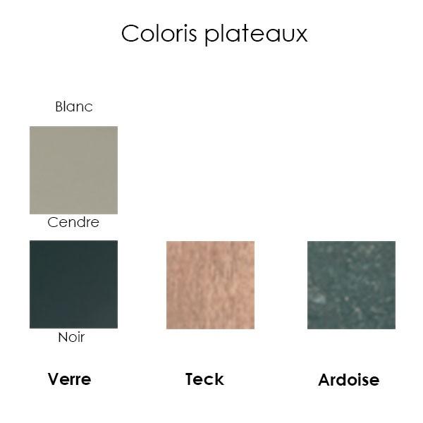 Struttura in acciaio inox con finitura elettrolucidataPiano in vetro, teak (eccetto Nimio 60) o Bluestone (pietra blu dal Belgio)
