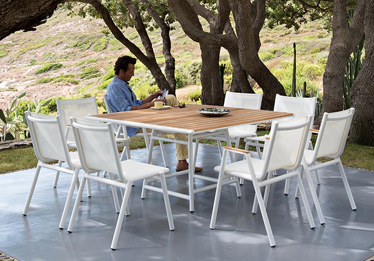 -Tela Batyline ISO: il filo Batyline®® ISO è antistrappo, estremamente resistente e ipoallergenico. Basato su poliestere e PVC tinto in massa, offre una grande stabilità del colore. Il tessuto Batyline® è resistente nel tempo, facile da mantenere, leggero, flessibile, trattato antifungino (si adatta all'umidità e allo sviluppo di microrganismi), si asciuga rapidamente e rimane "fresco" anche in estate.-Tela Batyline Eden: questa finitura combina la resistenza della tela Batyline® ISO e la morbidezza del tocco tessile. ® Questa tela offre un tocco setoso ai mobili e un grande comfort di seduta. Con una doppia trama di fili inguainati e fili sintetici, la tela non si attacca alla pelle e si asciuga rapidamente. Facile da mantenere, non pillola, colorato nella massa, è resistente ai raggi UV, all'umidità, alle temperature estreme e alle muffe.