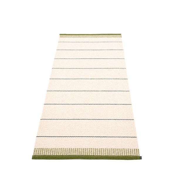 - L140cm x larghezza 200cmIl tappeto Belle Dark Olive di Pappelina fa parte della collezione di alta gamma del marchio scandinavo. Questo tappetino da esterno è tradizionalmente realizzato su macchine per tessitura ed è modernizzato attraverso l'uso del PVC. Ciò gli conferisce un'elevata resistenza agli agenti atmosferici, ai raggi UV e alle temperature estreme. Facile da mantenere, puoi lavarlo senza paura, a mano o in lavatrice a 30°. Disponibile in diversi colori di strisce e diverse dimensioni, Belle si installerà perfettamente all'esterno di fronte all'ingresso della tua casa, su un balcone, una terrazza o lungo una piscina.