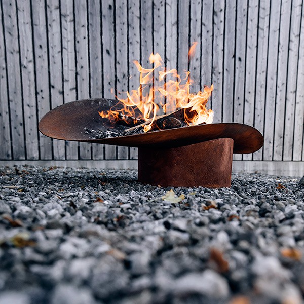 Realizzato interamente in solido acciaio corten, il braciere Ellipse cambierà colore nel tempo. Alla reception, il braciere Ellipse è grigio, quindi, a poco a poco, adotterà un colore corten ultra deco.