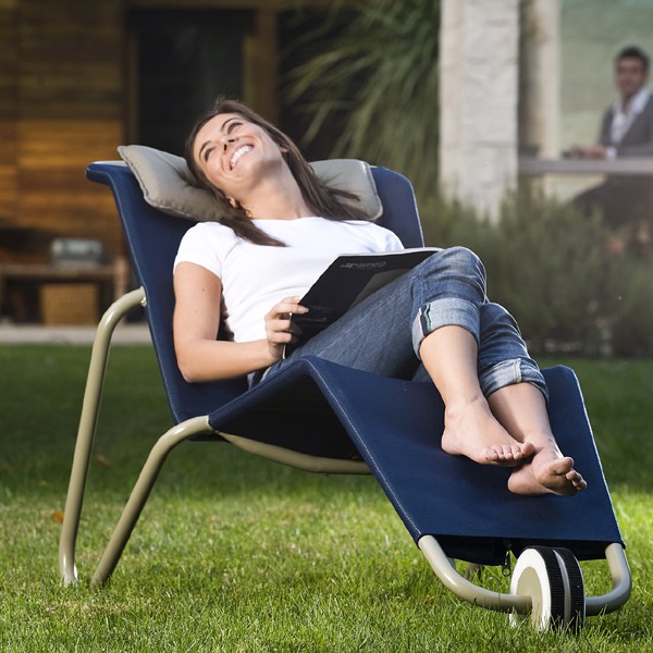 Garnie d'un coussin de tête de la même couleur que la toile, Carioca est extrêment légère et grace à sa roue avant elle se déplace en un tour de main.