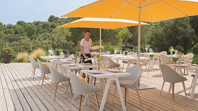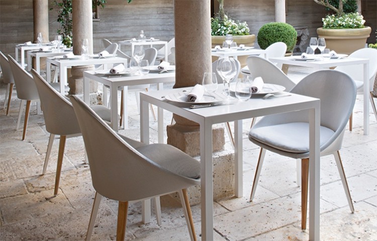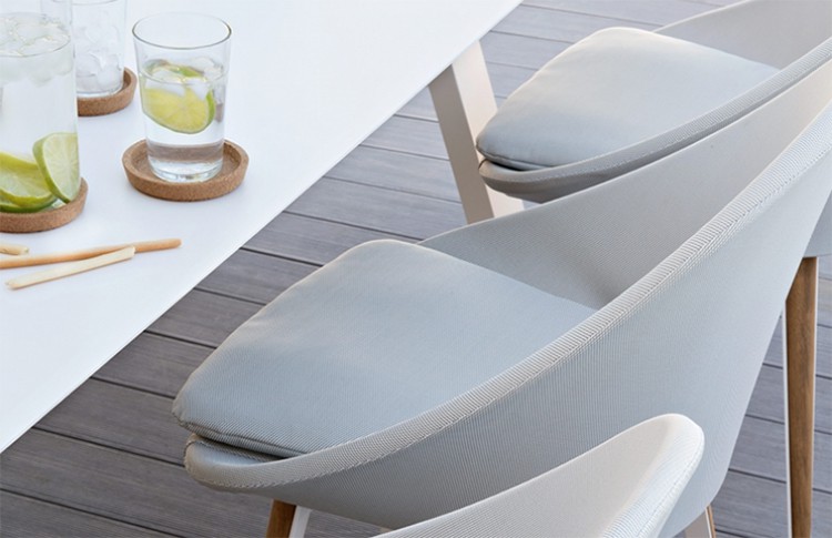 Sedia da pranzo progettata per uso esternoStruttura in alluminio laccato - Base con inserto in teak massello naturale