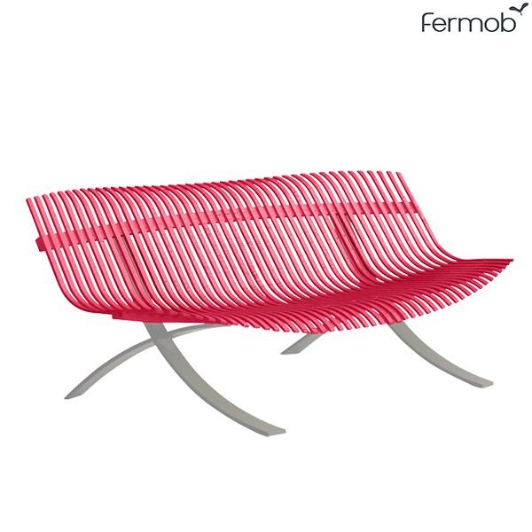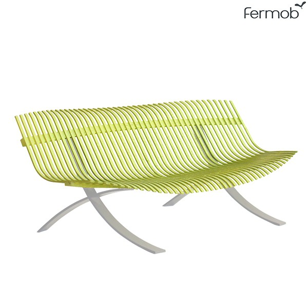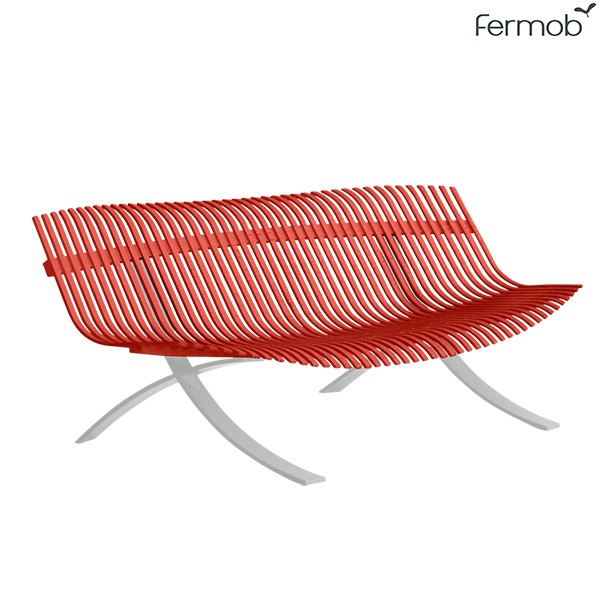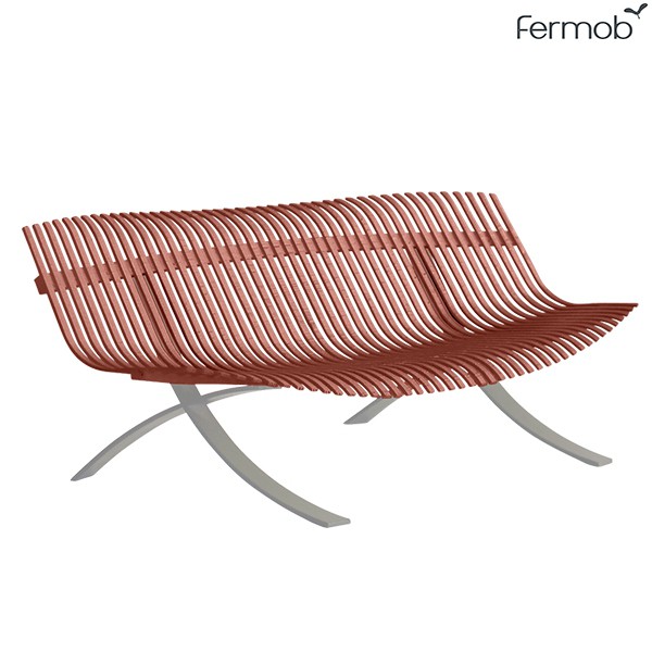 Panca progettata per uso esternoSeduta in doghe in alluminio curvato - Base in acciaio - Verniciatura a polvere anti-UV