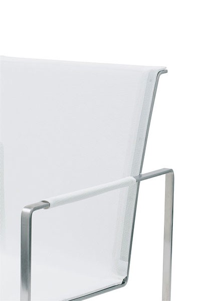 Struttura in acciaio inox con finitura brillantatoSeduta e schienale in fibra di Batyline® di
