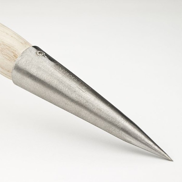 Acciaio spazzolato e lucidato a mano dà lo strumento un'elevata resistenza all'ossidazione e la facilità di manutenzione. Infatti, la terra non è conforme allo strumento ed evita di dover ripulire. Forte e nobile, legno di frassino si sposa perfettamente con l'acciaio della dibble.