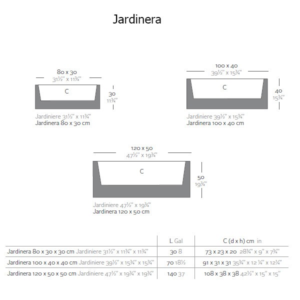 - Disponibile anche nella versione Jardinera Planter e nella versione Jardinera Luminous Planter.