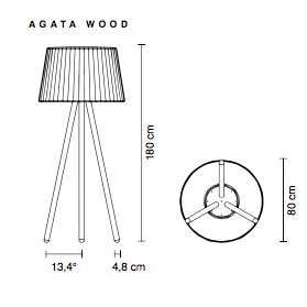 -Dimensioni: O80cm x H180cm - Base o60cm - peso: 20 kg-Colori: bianco paralumi - piedi legno naturale