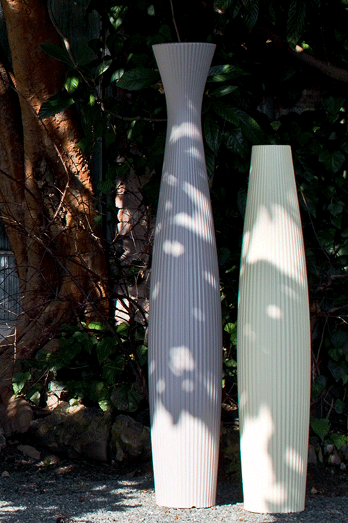 La/lampada da terra / vaso luci Scarlett 140 cm disegnata da Christophe Pillet per Serralunga per illuminare qualsiasi spazio con voluptuosite.