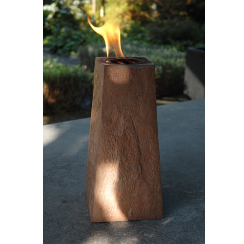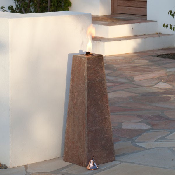 Lampe à huile minérale ocre, fabriquée au Danemark, s'utilise en extérieur