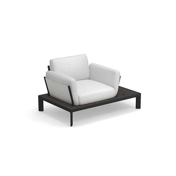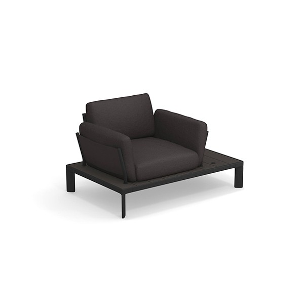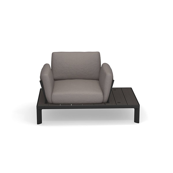 La struttura della poltrona, che funge da base per i cuscini, offre ulteriore spazio accanto alla seduta, sufficiente a fungere da tavolino per depositare accessori, riviste, bevande,...
