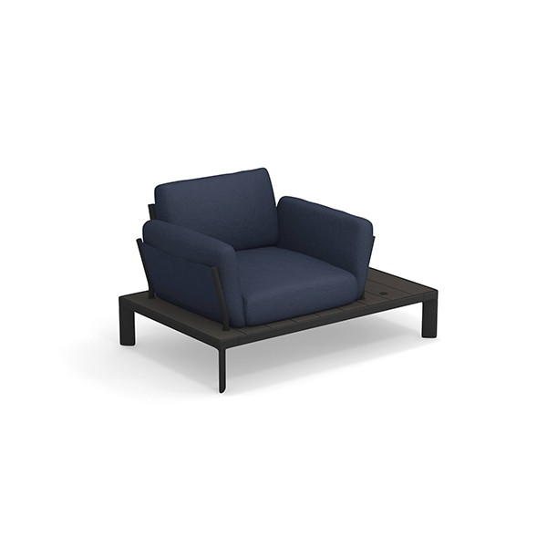 -struttura nera- WPC antracite - tessuto braccioli e schienale blu - tessuto cuscino blu