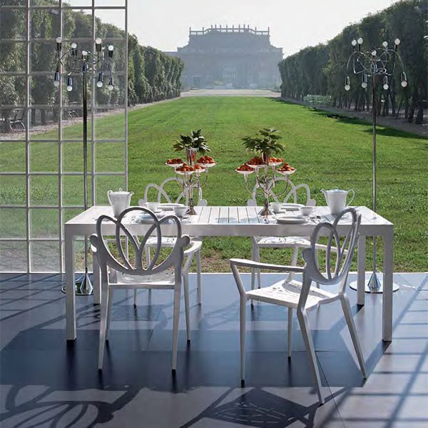 Suoi file in arabeschi e il suo vestito in alluminio laccato bianco dargli ineguagliabile eleganza e finezza.