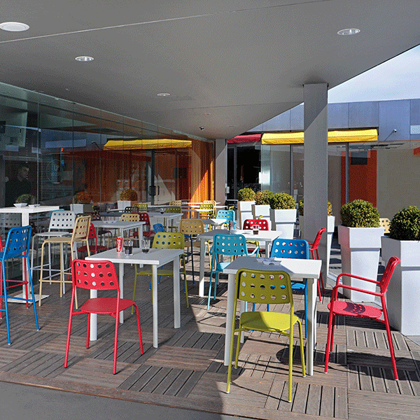 Disponibile in 10 colori: grigio cemento, in alluminio, ferro antico, bianco panna, nero, marrone India, blu, verde, arancio e scarlattoSet di 4 sedie Shot da Emu è uno dei 4 fuori sedie ideali per entrambi privati e uso del contratto. Loro struttura tubolare, loro acciaio seduta e schiena per motivi traforati garantiscono comfort estremo. Con il loro sistema di protezione del metallo "EMU COAT" queste sedie sono molto resistenti agli agenti atmosferici. Queste sedie impilabili e salvifica adattano in contesti diversi e di aderire all'UEM come insieme di diverse tabelle Tabella Star. Disponibile in diverse tendenze colore, questi vivaci sedie un tocco di freschezza al vostro esterno. Si possono trovare nella stessa collezione Colpo di sedia e il alto sgabello colpo.