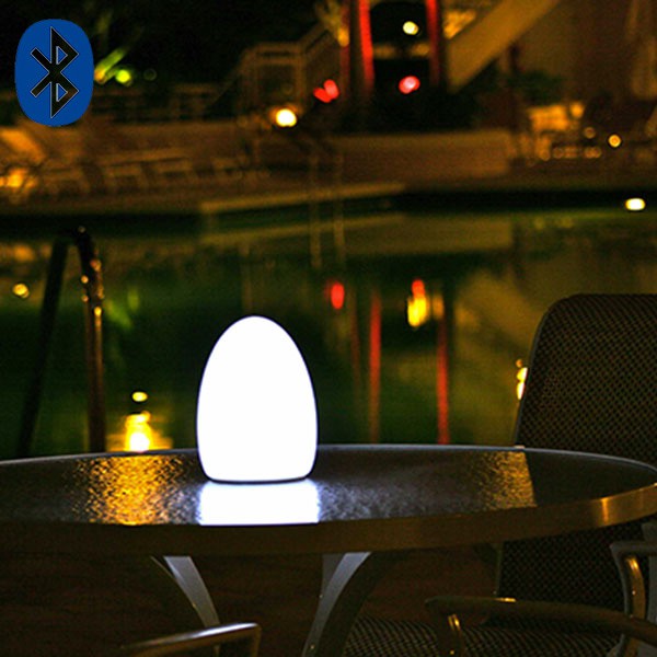 La luce della sfera Egg Bluetooth® con intelligente e verde è un disegno di palla luminosa ed ecologico. Questa sfera luminosa è stata condotta in polietilene per resistere a urti e cadute.