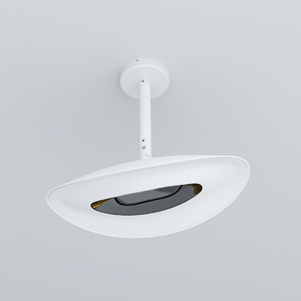 Grazie al suo diffusore basculante di forma ovale, la Plafoniera Riscaldante Simple Hotdoor permette di dirigere il calore con un semplice gesto. Il diffusore è orientato dal basso verso l'alto. Per un orientamento da sinistra a destra, Phormalab offre un giunto come accessorio, contattaci.
