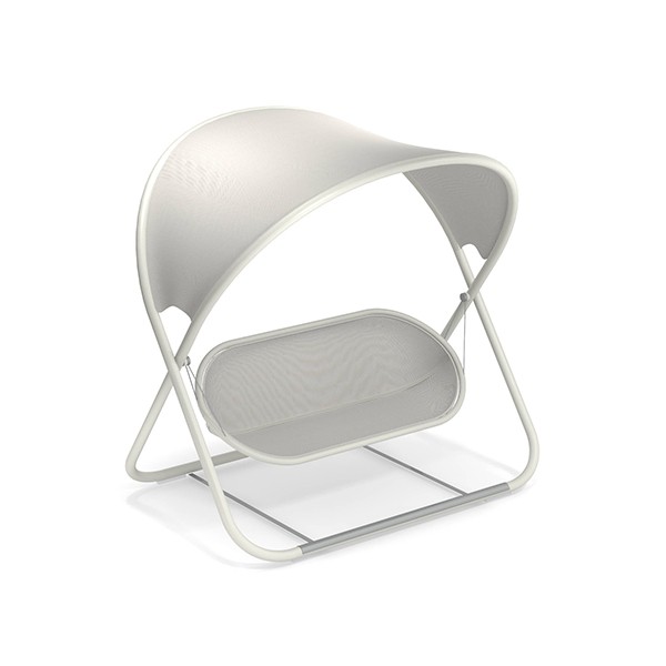 Altalena di design progettata per uso esterno - Consegnata non assemblataStruttura in acciaio verniciato bianco, poggiapiedi in acciaio inox, tessuto sintetico 3D poliestere bianco