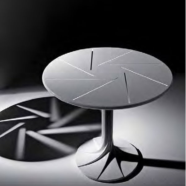 Tavolo da pranzo in alluminio laccato bianco disegnato da Antonia Astori