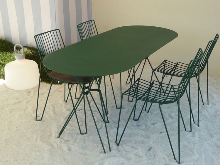 Tavolo con vassoio ovale in metallo, acciaio zincato, struttura di rivestimento in poliestere