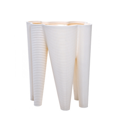 Designer Ron Arad ha disegnato la sua immaginazione sul fondo del mare per rendere la pentola i vasi, sua forma evoca una pianta acquatica, suo materiale lavorato in striature di diversi spessori evoca la texture di un corallo.