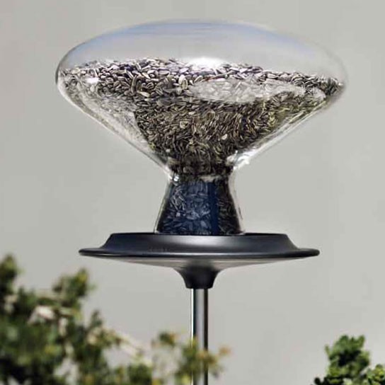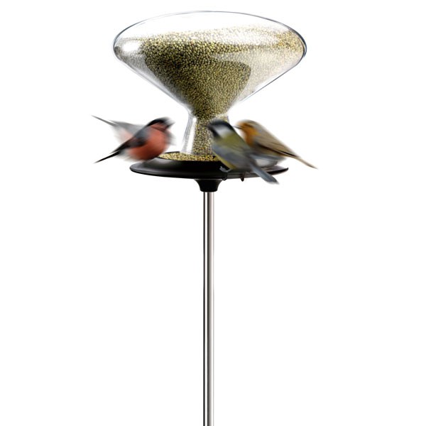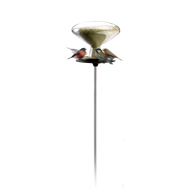 Dedicato ai piccoli uccelli al vostro giardino, questo alimentatore è costituito da un cilindro di vetro che ospita i semi e un piede inox piantare direttamente a terra.